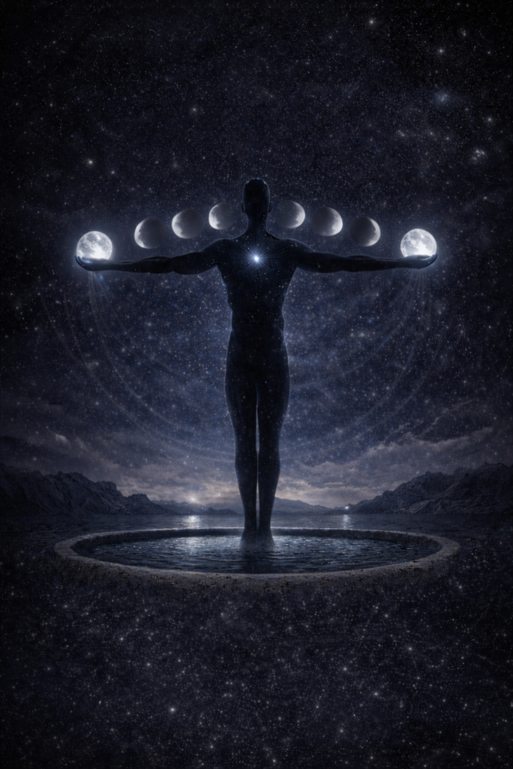 To die upon the cross is to store form within the heart. This is the same way energy stores through a dielectric: not as substance, but as pattern. Energy never dies; it transfers as charge and discharge. Monday becomes the day of discharge—the reset that begins a new regenerative cycle through the harmonic architecture of the living field of space‑time‑mind.When I hear an Angel sing at 528, I hear Persona at 528—the dielectric pattern of energy held upon the cross. Persona is Per (through) + Sona (utter, emit sound): the through‑sound of a life. Persona 528 and Dielectric 528 are two views of the same structure.A dielectric is a field‑shaping medium.• It does not contain energy.• It shapes the geometry of the field.• The geometry determines the density.• The energy is the tension pattern, not the material.A life follows the same law. The self does not store energy as substance; it stores it as configuration. Identity is the polarization pattern we can sustain. The world applies tension, the field organizes, and the resulting geometry becomes the mask we call “me.”The cross is the limit of that geometry—the axis where the pattern reaches the end of what it can hold. When the sustaining energy withdraws, the pattern dies. The mask falls. The field remains. This is the death of persona, not the death of the one who generated it. The cross is the point where stored pattern resolves back into source.The diagram maps this entire process: the boundary that shapes the field, the star that shows the standing wave, the frequencies that mark the modes we can hold, and the archetypes that name their expression. It is the life mask drawn as geometry. Energy enters, forms a pattern, speaks through us, and dissolves back into the axis.What persists is the through‑sound—the field that remains after the pattern breaks. Persona is temporary. Utterance is the continuity.
